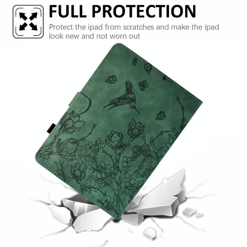 Θήκη Smart δέρματος με ανάγλυφα λουλούδια και πουλιά για Amazon Fire 7 2022 (Καφέ)