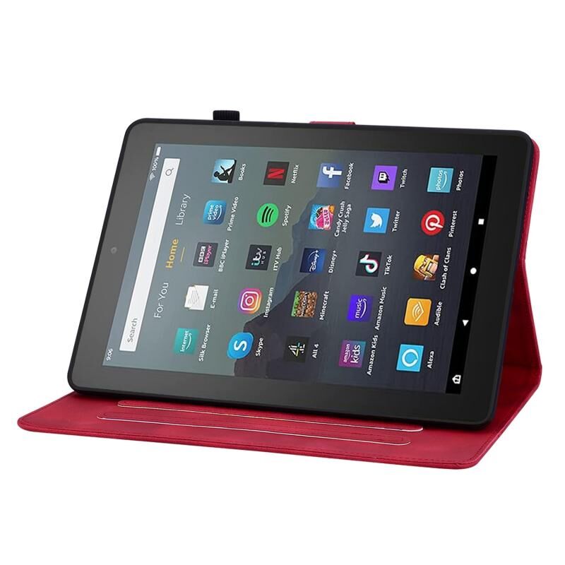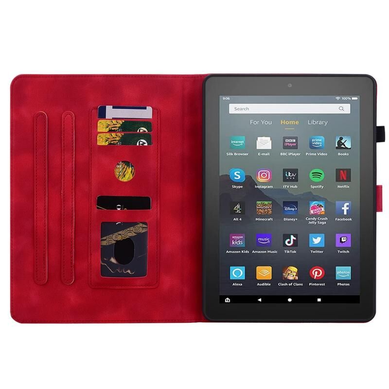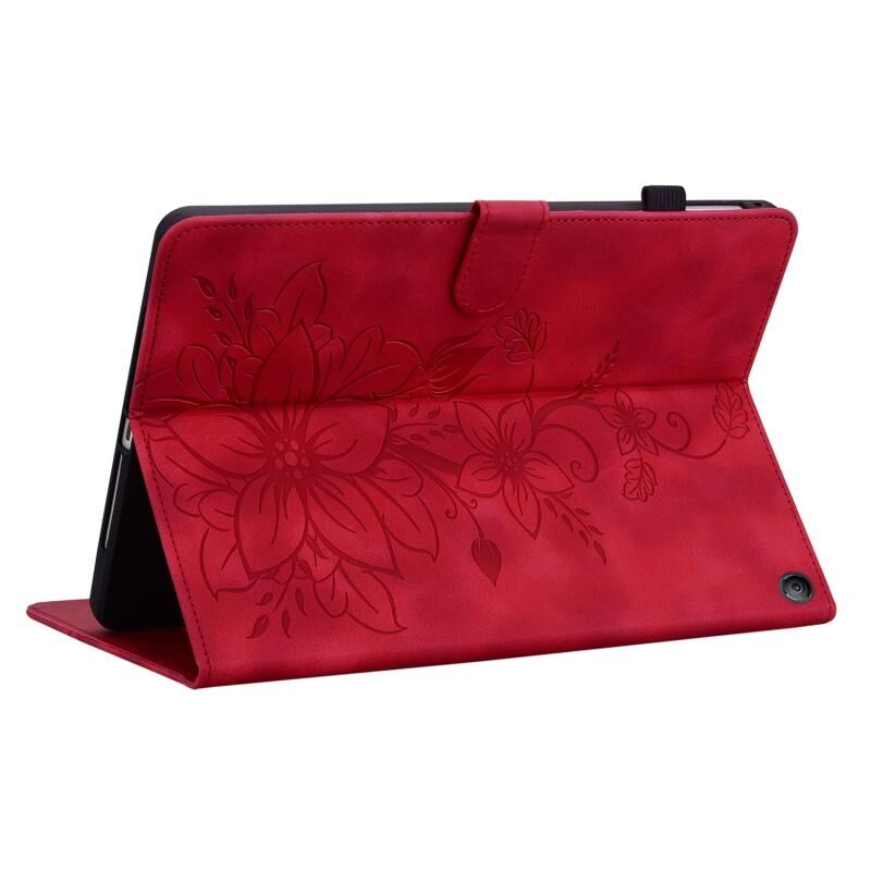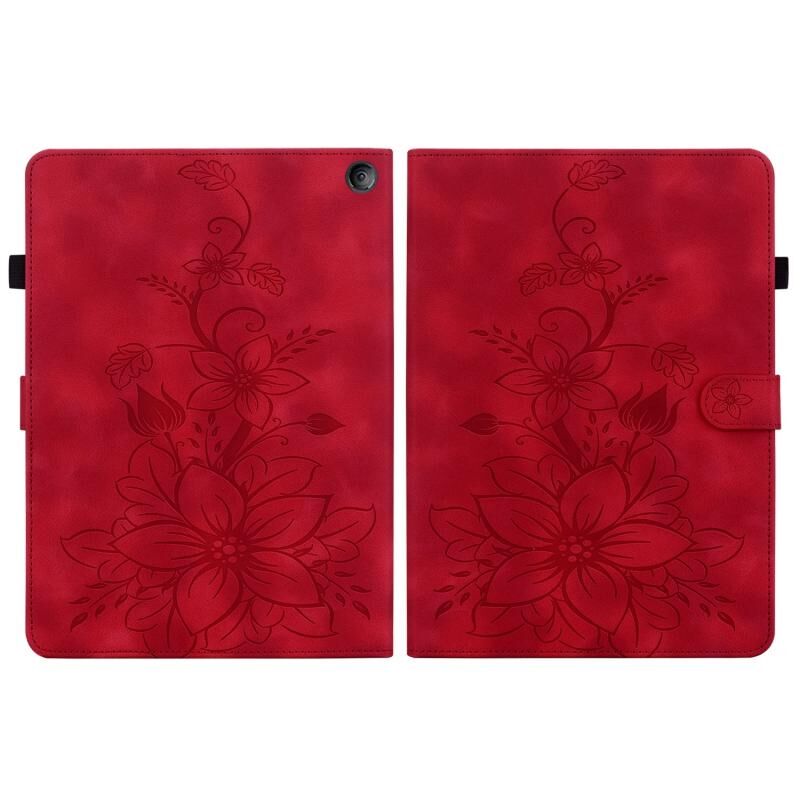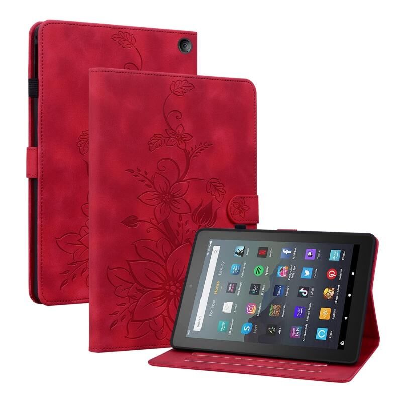 Για το Amazon Fire 7 2022 Lily ανάγλυφη δερμάτινη θήκη tablet (κόκκινο)