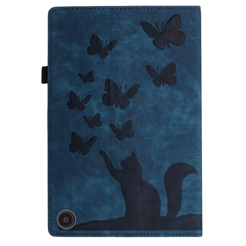 Θήκη Ταμπλέτας Δερμάτινη με ανάγλυφο σχέδιο πεταλούδας και γάτας για Amazon Fire HD 10 2023 (Σκούρο Μπλε)