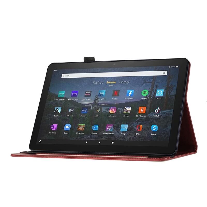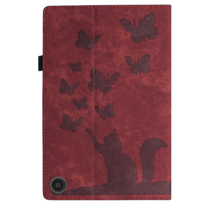 Θήκη Ταμπλέτας από Δέρμα με ανάγλυφο σχέδιο Πεταλούδας και Γάτας για Amazon Fire HD 10 2023 (Κόκκινη)