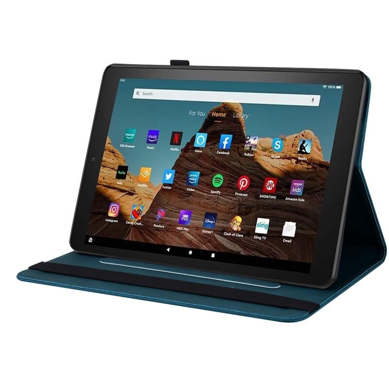 Θήκη ταμπλέτας από δέρμα με ανάγλυφο σχέδιο πεταλούδας και λουλουδιών για Amazon Fire HD 10 2023 (Μπλε)
