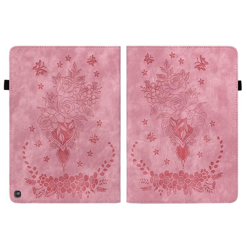 For Amazon Fire HD 10 2023 Butterfly Rose Embossed Leather Tablet Case(Pink)