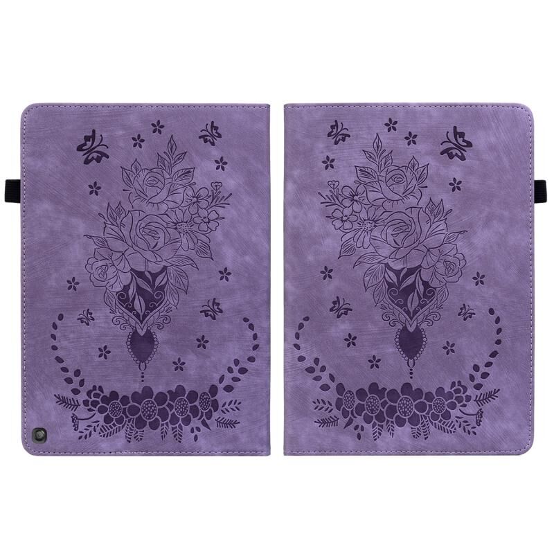 Θήκη ταμπλέτας από δέρμα με ανάγλυφο σχέδιο πεταλούδας και τριαντάφυλλου για Amazon Fire HD 10 2023 (Κόκκινο του Ρόδου)