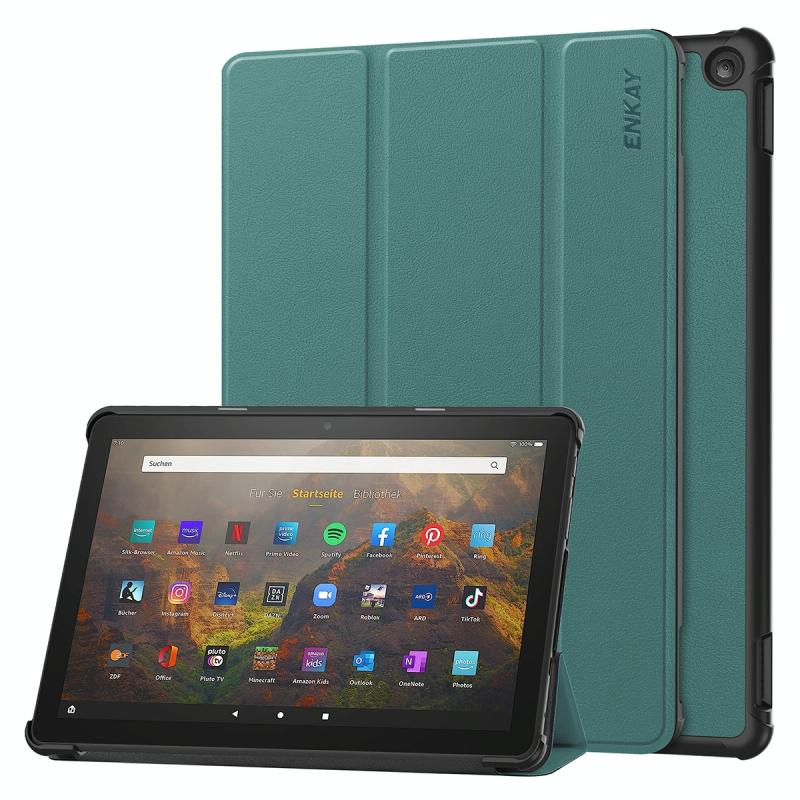 For Amazon Fire HD 10 2023 ENKAY ENKAY Tri-fold Custer Texture Leather Smart Tablet Case(Dark Green) (ENKAY)