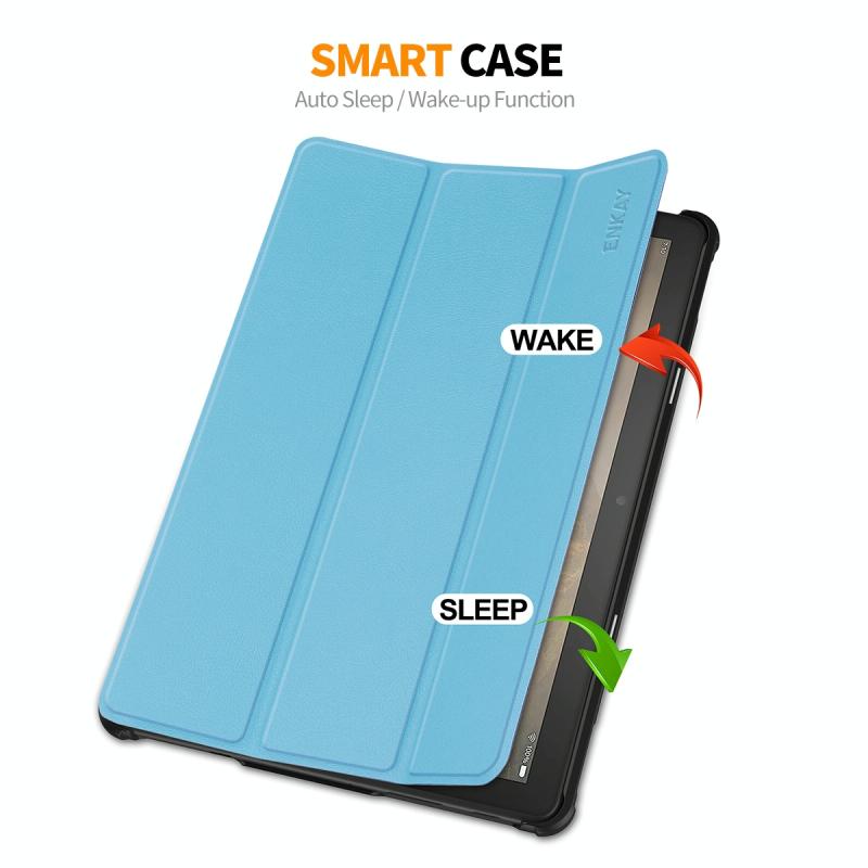 2. Automatic sleep/wake: When you open the protective cover, the built-in magnet will wake up your tablet immediately, and when you close it, it will go to sleep.