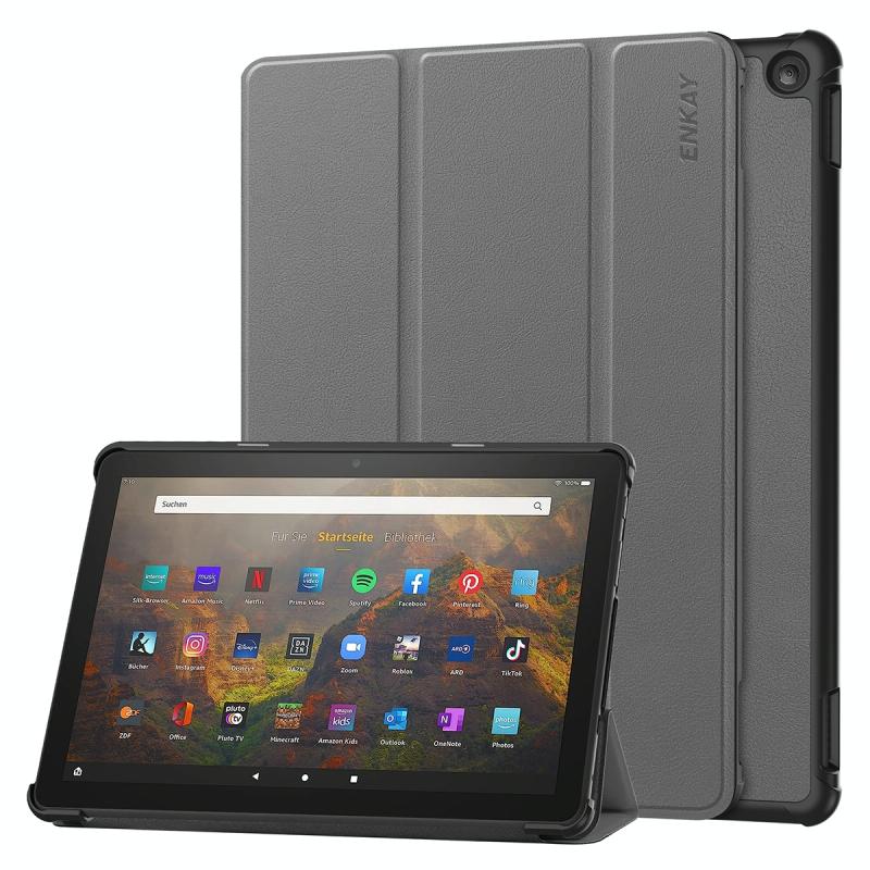 For Amazon Fire HD 10 2023 ENKAY ENKAY Tri-fold Custer Texture Leather Smart Tablet Case(Grey) (ENKAY)