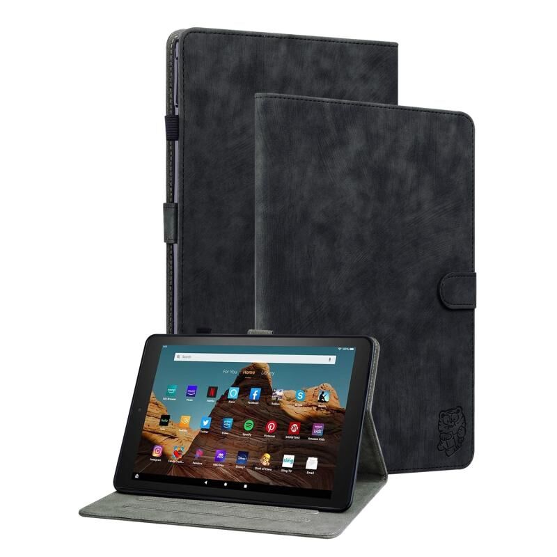 Για Amazon Fire HD 10 2023 Tiger Pattern Flip δερμάτινη θήκη Tablet (μαύρο)