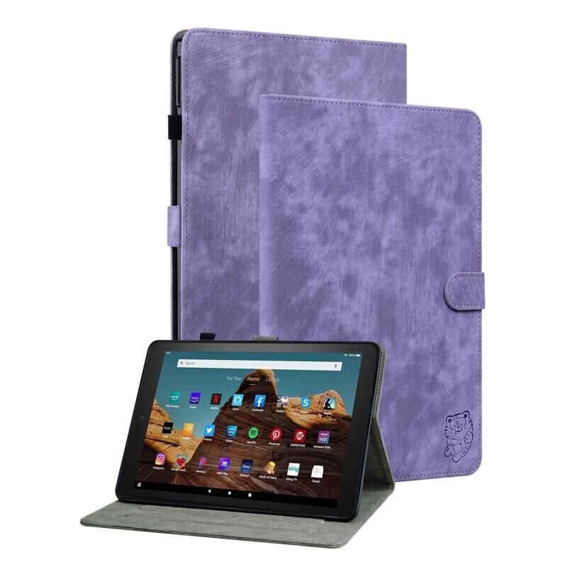 Για Amazon Fire HD 10 2023 Tiger Pattern Flip δερμάτινη θήκη Tablet (μωβ)
