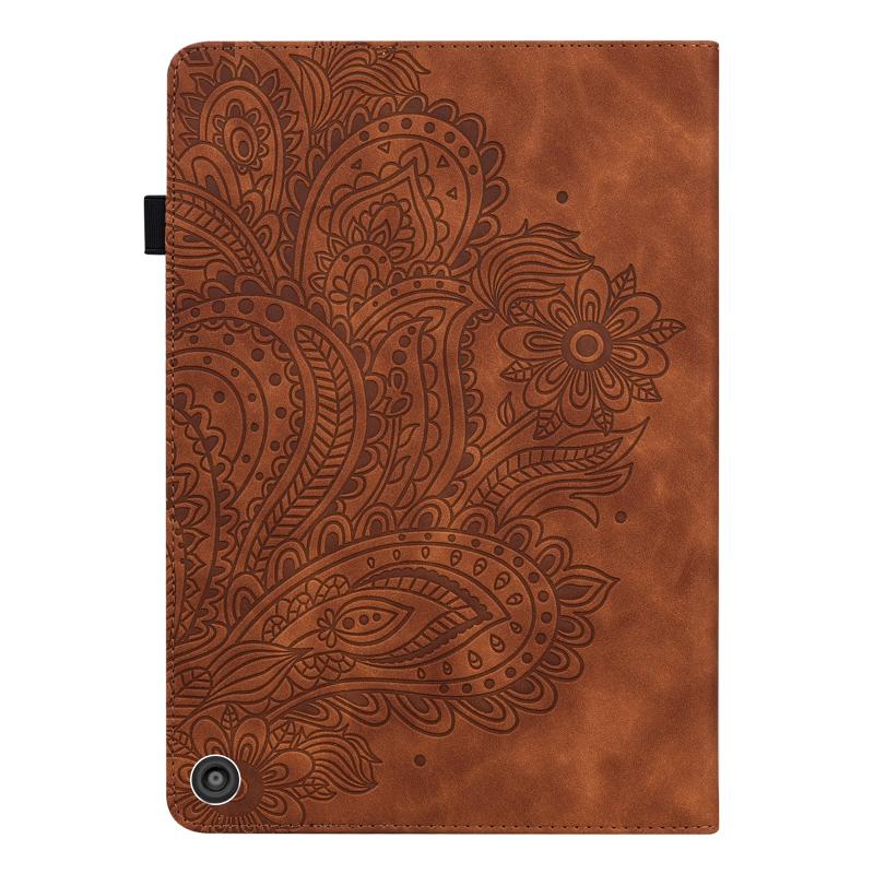 Θήκη ταμπλέτας από δέρμα με ανάγλυφο σχέδιο παγωνιού για Amazon Fire HD 8 2020 / HD 8 Plus 2020 με λειτουργία ύπνου / αφύπνισης (Καφέ)