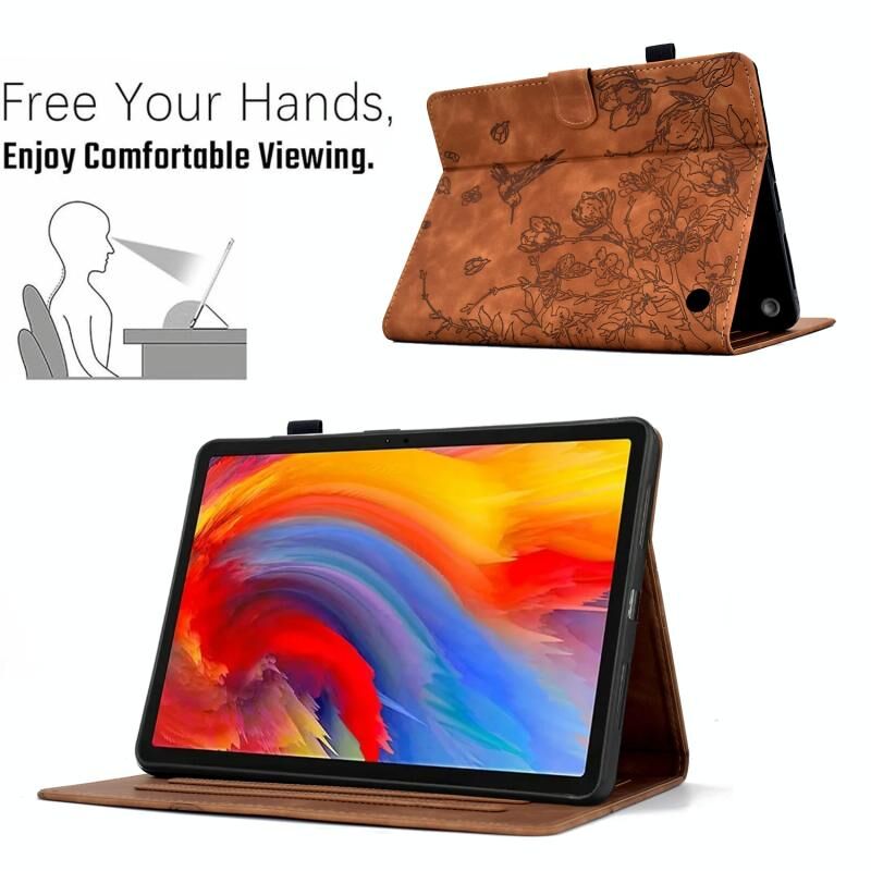 Θήκη Smart δέρματος με ανάγλυφα λουλούδια και πουλιά για Amazon Fire HD 8 2022/2020 (Καφέ)