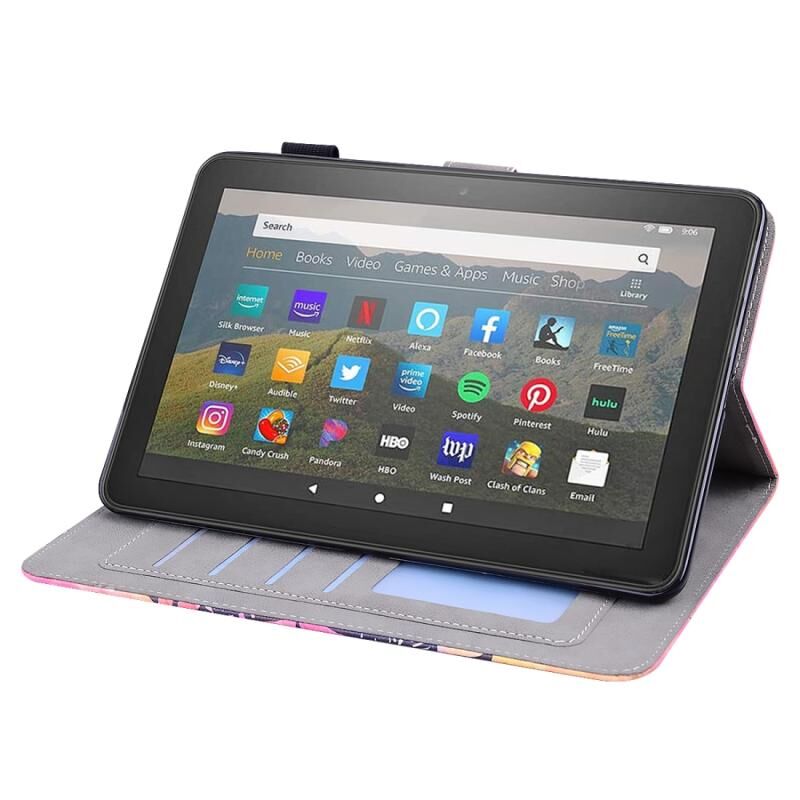 Θήκη δέρματος οριζόντιας αναδίπλωσης για Amazon Fire HD 8, με θήκες καρτών & βάση & κορνίζα φωτογραφιών (Λουλούδια Ντατούρας)