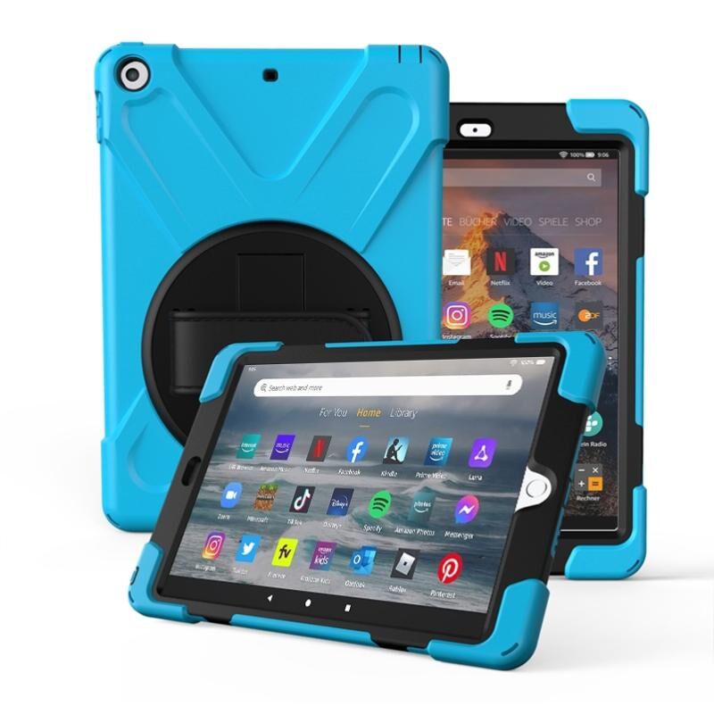 For Amazon fire HD10(2017)(2018)(2019) 360 Degree Rotation PC + Silicone Protective Case with Holder & Hand-strap(Light Blue)