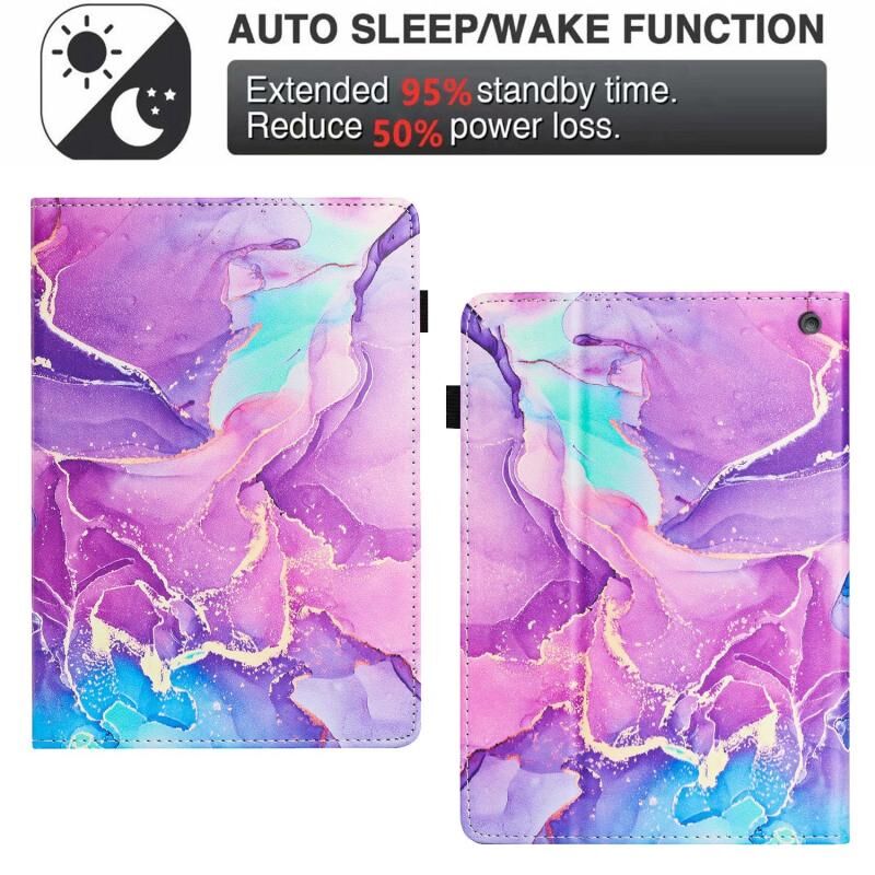Για Amazon Fire HD10 2023 / HD10 Plus Θήκη Smart Tablet από Δέρμα Λίτσι Μαρμάρου (Μωβ)