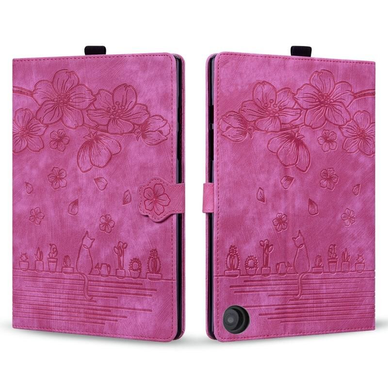 Για Amazon Fire HD10 /HD10 Plus 2021 Θήκη Ταμπλέτας από Δέρμα με ανάγλυφο σχέδιο κινούμενων σχεδίων Sakura Cat (Πράσινο)