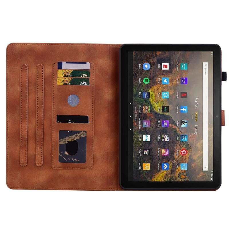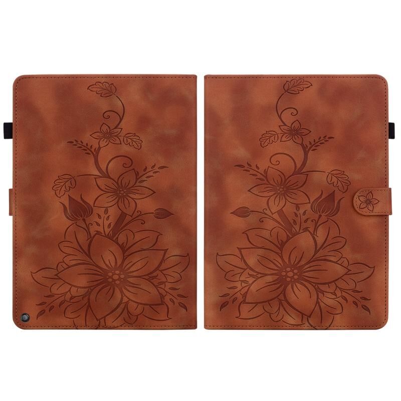 Για Amazon Fire HD10 / HD10 Plus 2021 Lily ανάγλυφη δερμάτινη θήκη για έξυπνο tablet (καφέ)