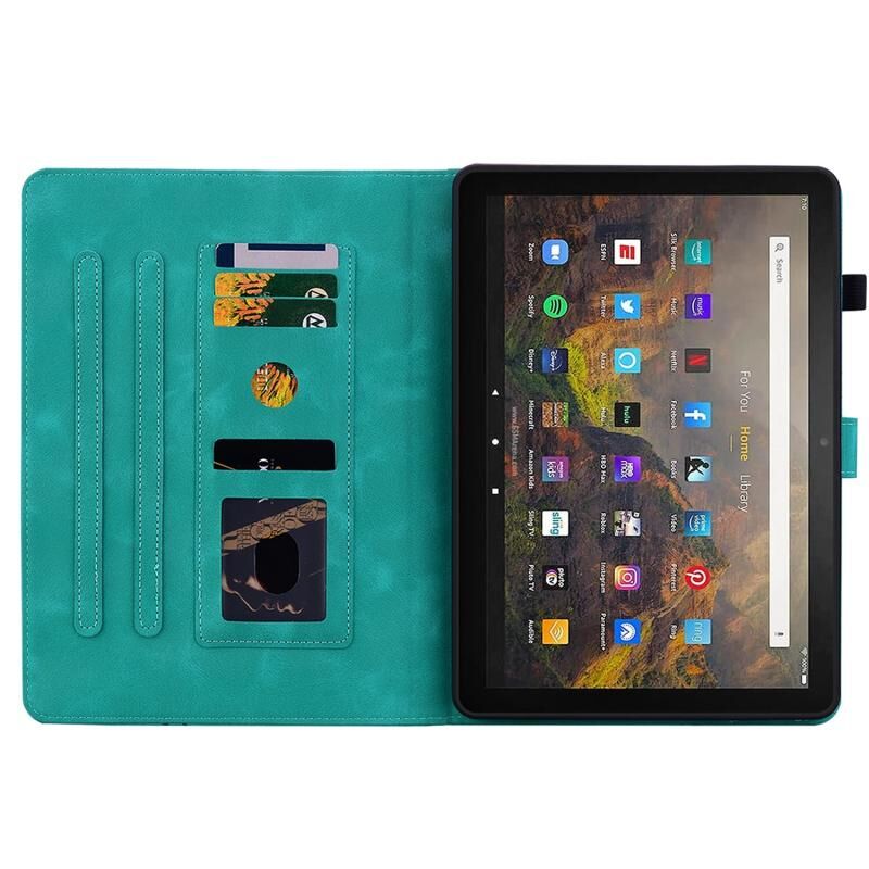 Για Amazon Fire HD10 / HD10 Plus 2021 Lily ανάγλυφη δερμάτινη θήκη για έξυπνο tablet (πράσινο)