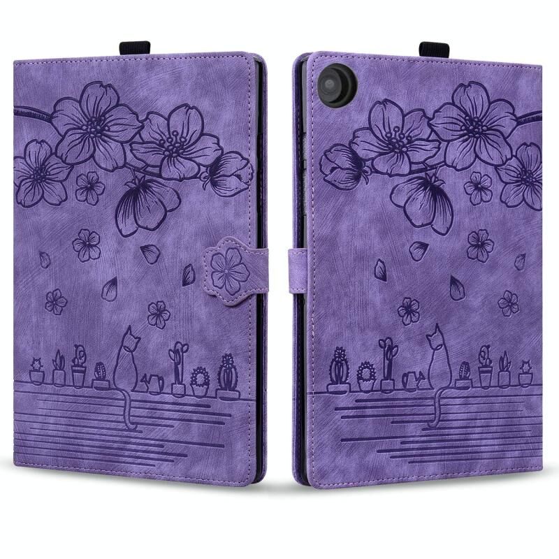 Θήκη ταμπλέτας από δέρμα με ανάγλυφο σχέδιο καρτούν Sakura Cat για Amazon Fire HD8 2015-2018 (Πράσινο)