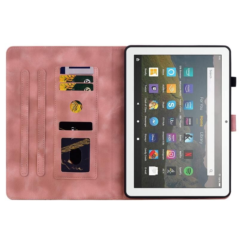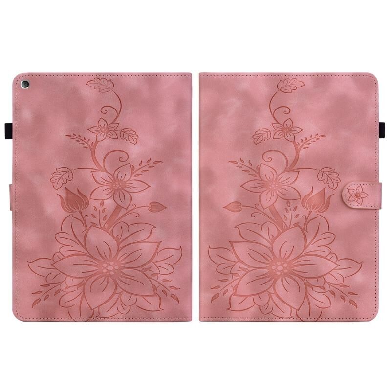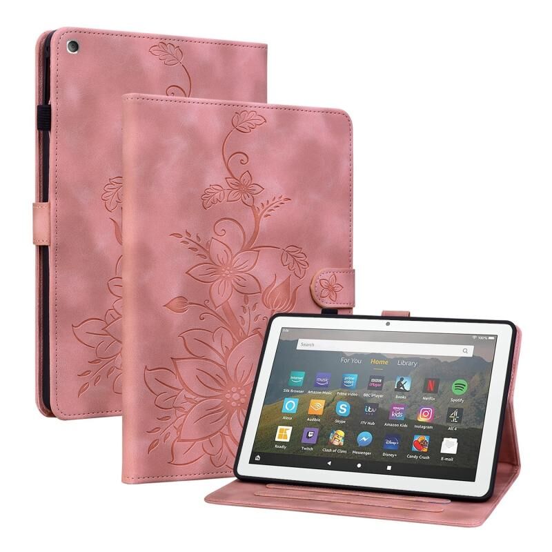Για Amazon Fire HD8 2015-2018 Lily ανάγλυφη δερμάτινη θήκη tablet (ροζ)