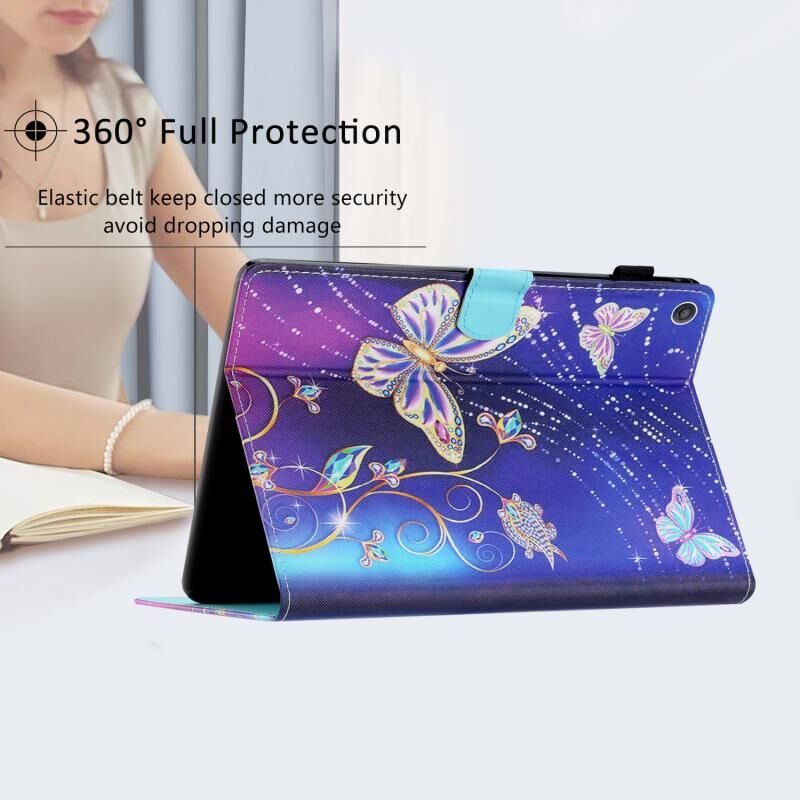For Amazon Fire HD8 2018/2017/2016 Coloured Drawing Stitching Smart Leather Tablet Case(Butterfly)