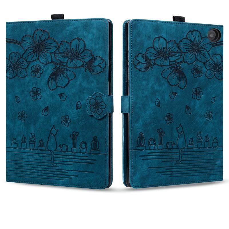 Θήκη ταμπλέτας από δέρμα με ανάγλυφο σχέδιο καρτούν Sakura Cat για Amazon Fire HD8 2020 / 2022 (Πράσινο)