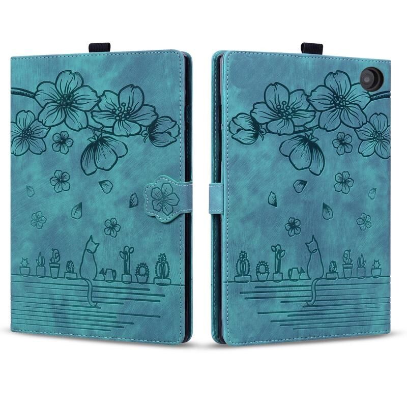 Θήκη ταμπλέτας από δέρμα με ανάγλυφο σχέδιο καρτούν Sakura Cat για Amazon Fire HD8 2020 / 2022 (Πράσινο)