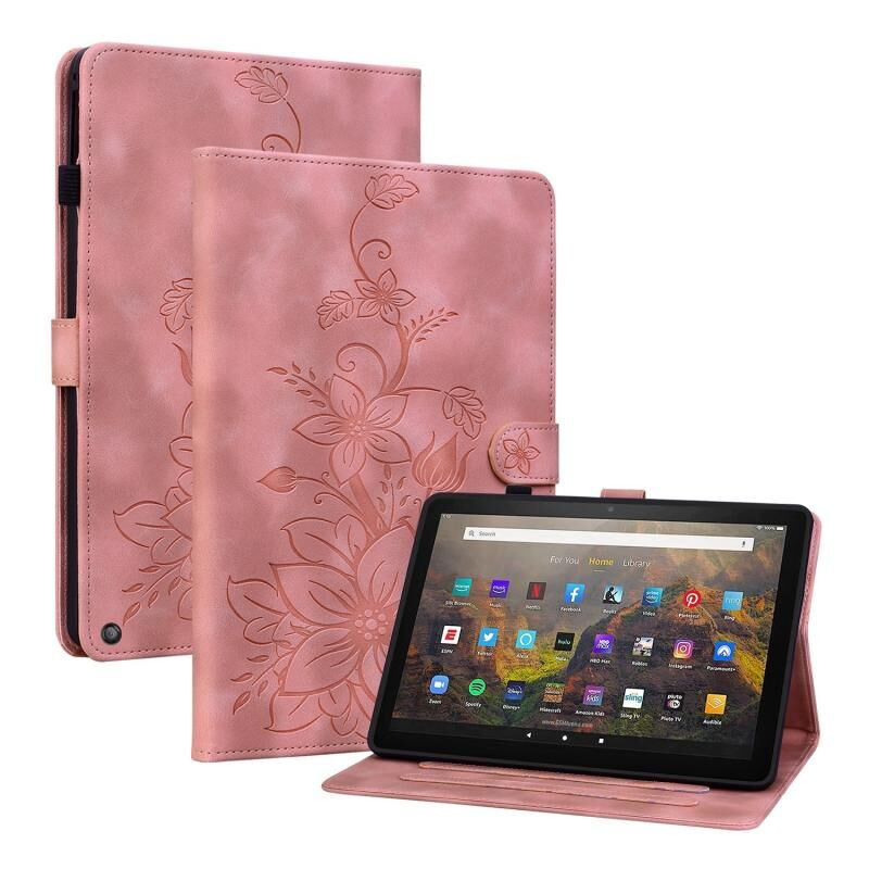 Για το Amazon Fire HD8 2020/2022 Lily ανάγλυφη δερμάτινη θήκη tablet (ροζ)