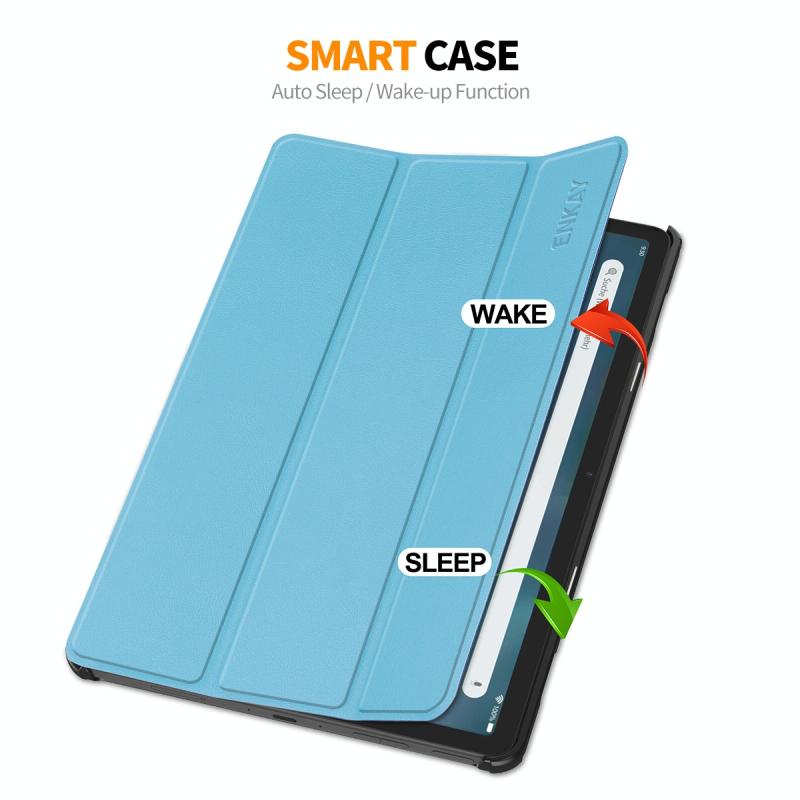 2. Automatic sleep/wake: When you open the protective cover, the built-in magnet will wake up your tablet immediately, and when you close it, it will go to sleep.