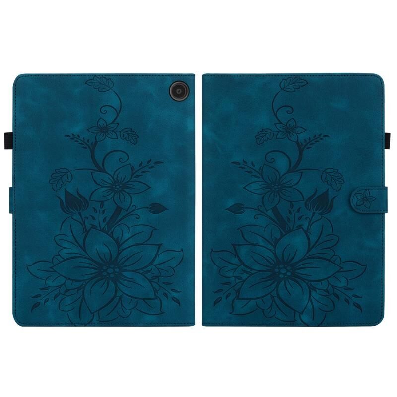 Για το Amazon Fire Max 11 Lily ανάγλυφη δερμάτινη θήκη tablet (σκούρο μπλε)