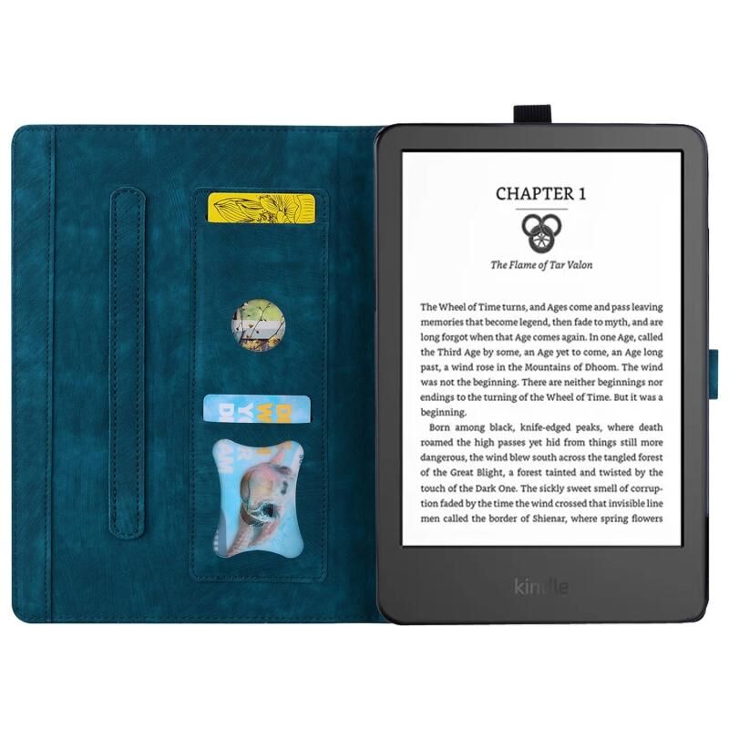 Θήκη ταμπλέτας από δέρμα με ανάγλυφο σχέδιο, έξυπνη, για Amazon Kindle 6.0 11th 2022, με καρτούν λουλουδιά κερασιάς και γάτα (Πράσινη)