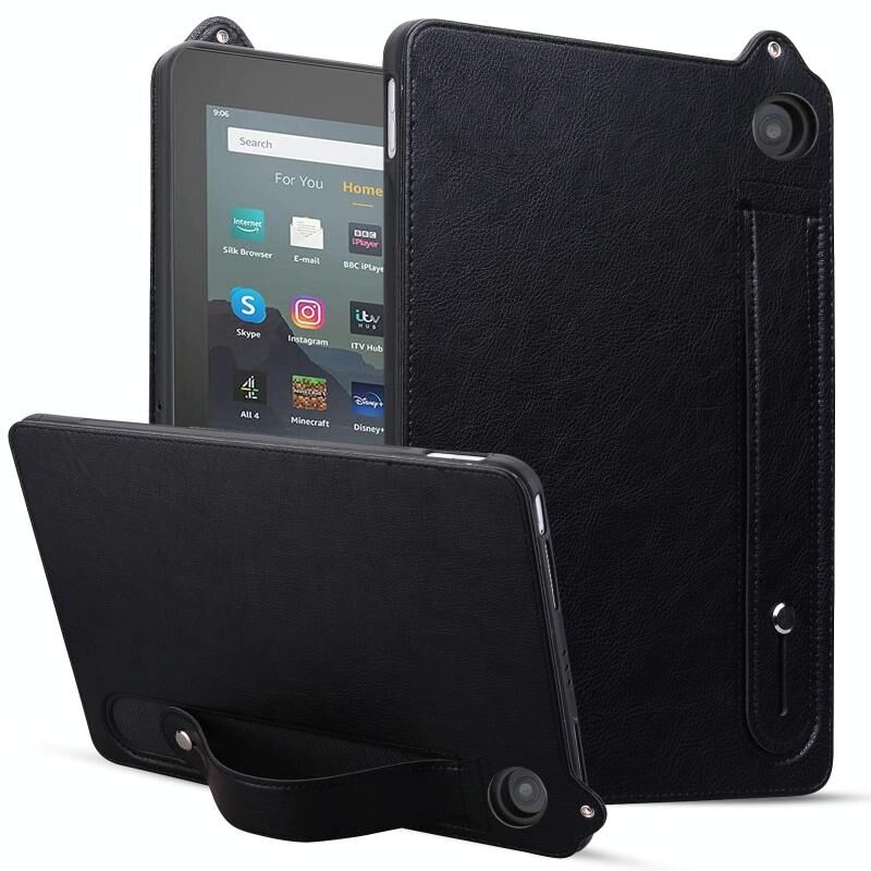 Για Amazon Kindle Fire 7 12η 2022 TPU δέρμα πίσω θήκη tablet με ζώνη καρπού (μαύρο)
