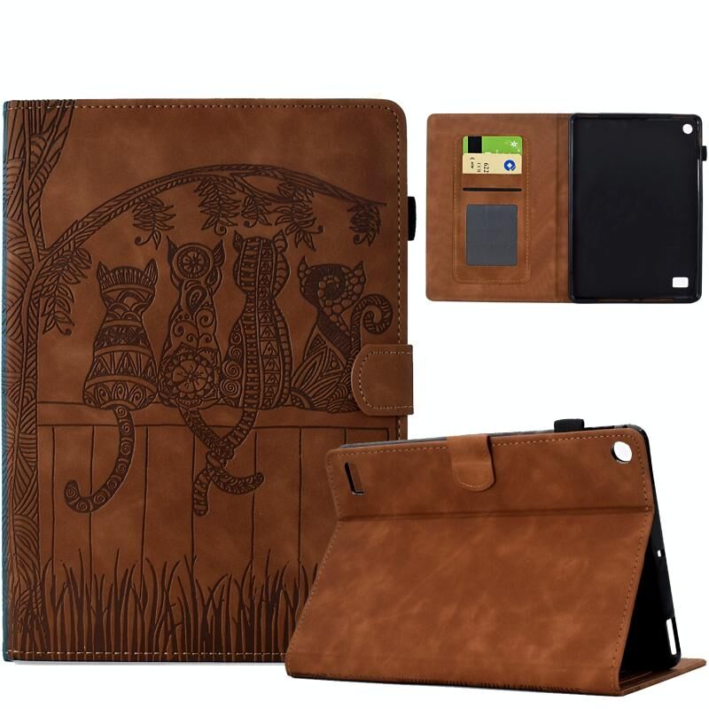 Θήκη Smart Tablet από Δέρμα με ανάγλυφα σχέδια Γάτας για Amazon Kindle Fire 7 2017 / 2019 (Πράσινο)