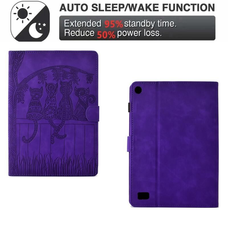 Θήκη Smart Tablet από Δέρμα με ανάγλυφα σχέδια Γάτας για Amazon Kindle Fire 7 2017 / 2019 (Πράσινο)