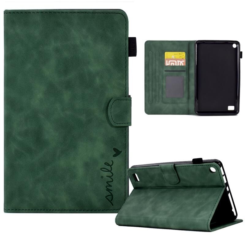 Για Amazon Kindle Fire 7 2019/2017/2015 Ανάγλυφο Smile Flip Tablet δερμάτινη θήκη (πράσινο)