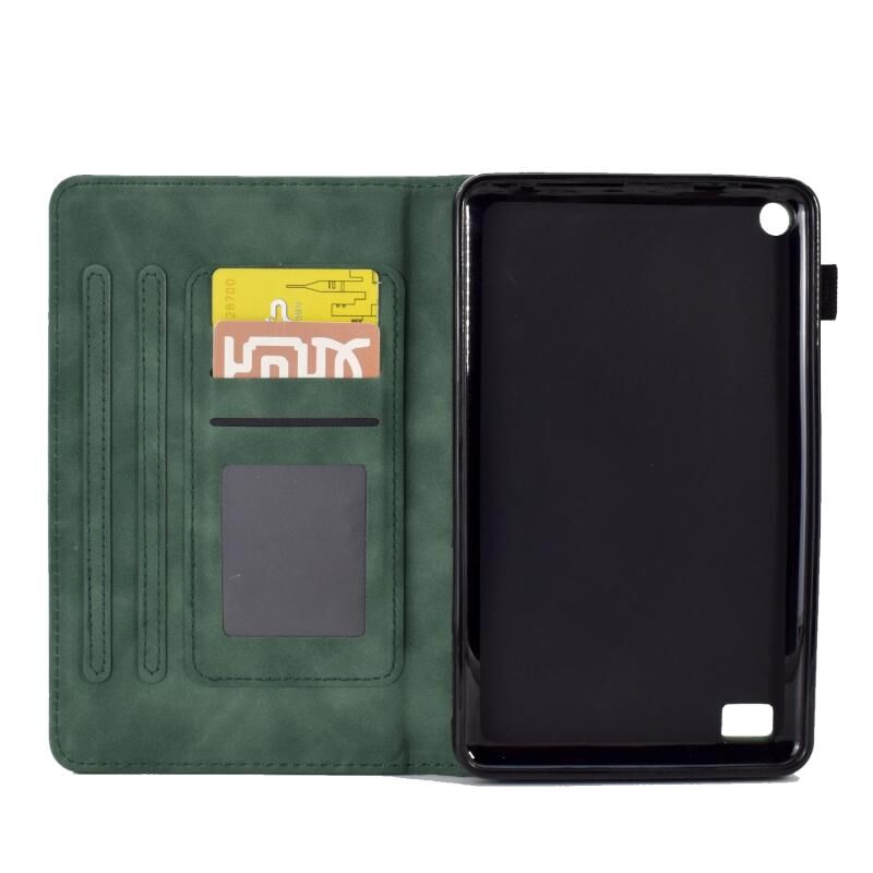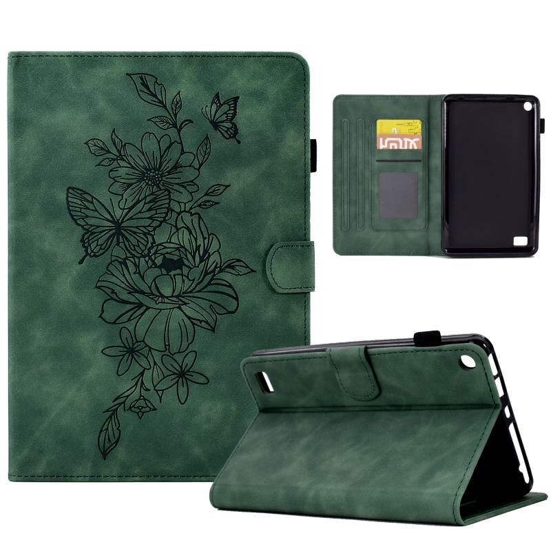 Για Amazon Kindle Fire 7 2019/2017/2015 Θήκη Ταμπλέτας από Δέρμα με ανάγλυφο σχέδιο Παιονίας και Πεταλούδας, με Αυτόματη Αφύπνιση/Ύπνο (Καφέ)