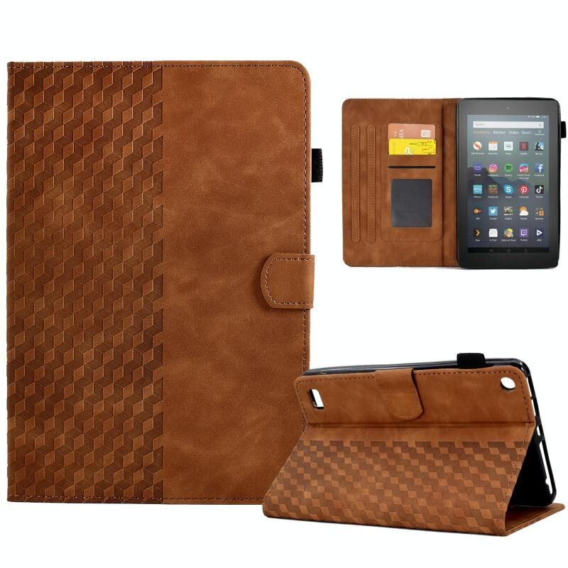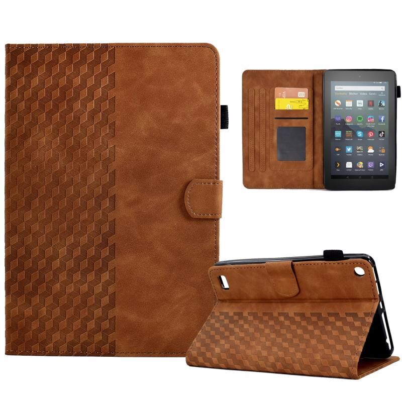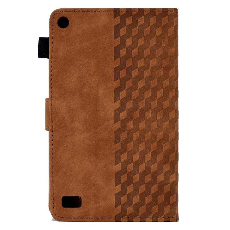 Για Amazon Kindle Fire 7 2019 / 2017 / 2015 Rhombus ανάγλυφη δερμάτινη θήκη tablet (καφέ)