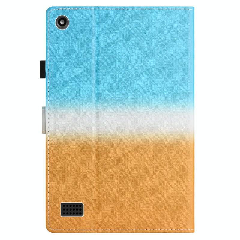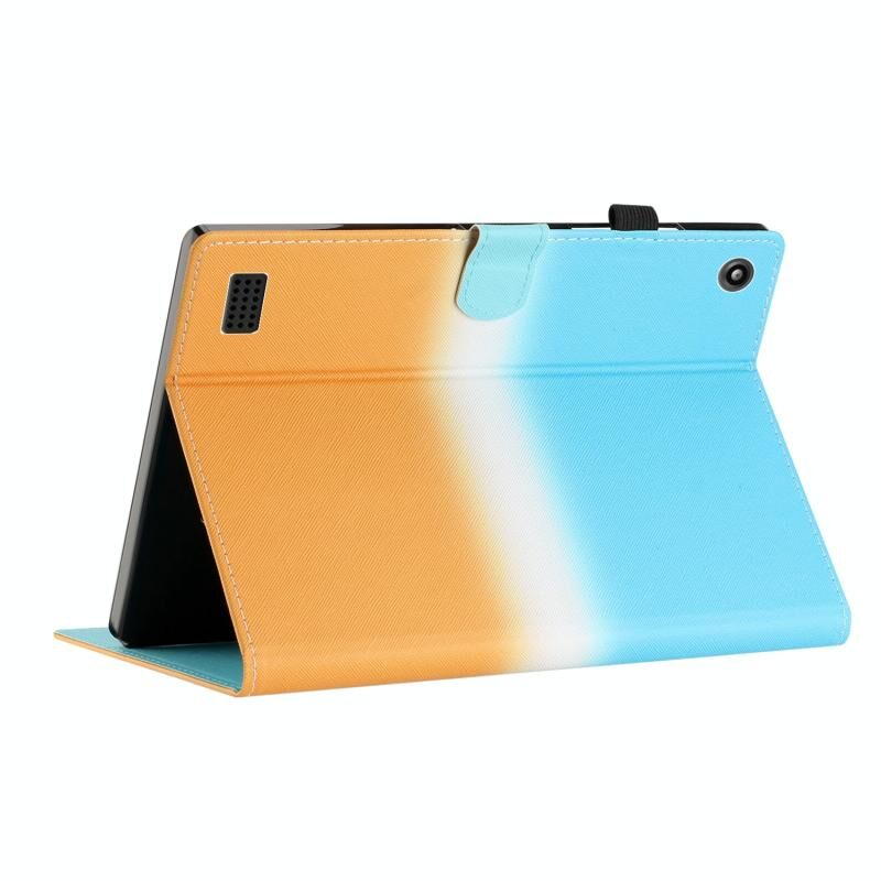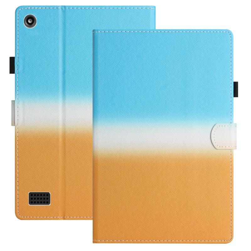 Θήκη Ταμπλέτας από Δέρμα με Ραφές και Διαβαθμιστικό Χρώμα για Amazon Kindle Fire 7 2019 / 2017 / 2015 (Μπλε Πορτοκαλί)