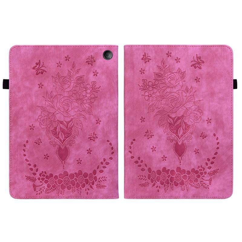 Θήκη ταμπλέτας από δέρμα με ανάγλυφο σχέδιο πεταλούδας και τριαντάφυλλου για Amazon Kindle Fire 7 2022 (Κόκκινο του Ρόδου)