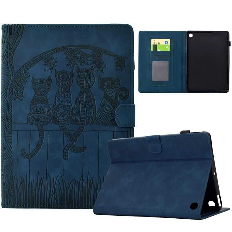 Θήκη Smart Tablet από Δέρμα με ανάγλυφα σχέδια Γάτας για Amazon Kindle Fire 7 2022 (Πράσινο)