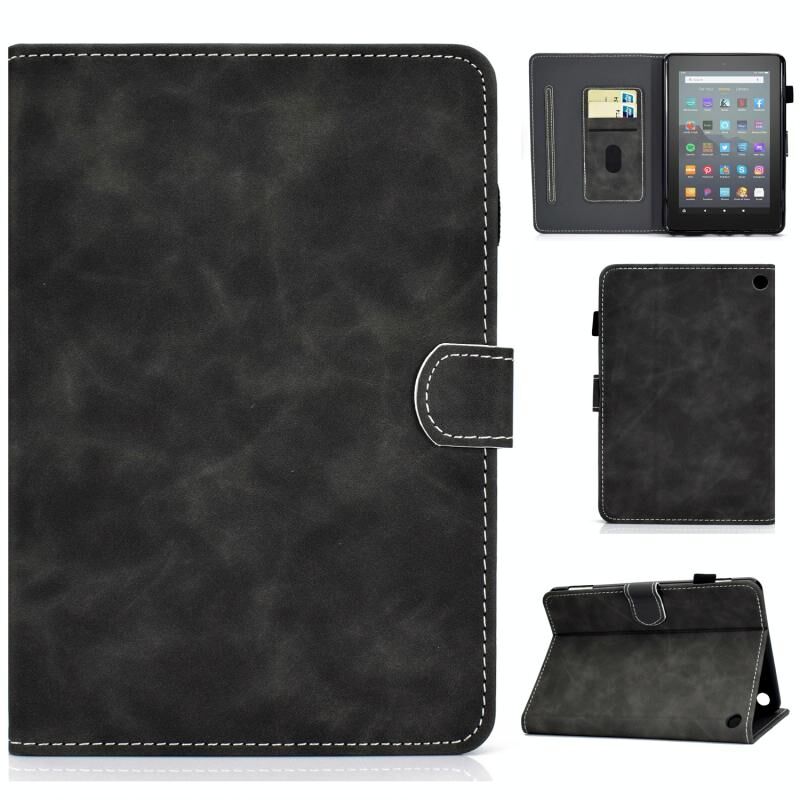 Θήκη ταμπλέτας από δέρμα με υφή δέρματος αγελάδας για Amazon Kindle Fire 7 2022 (Γκρι)