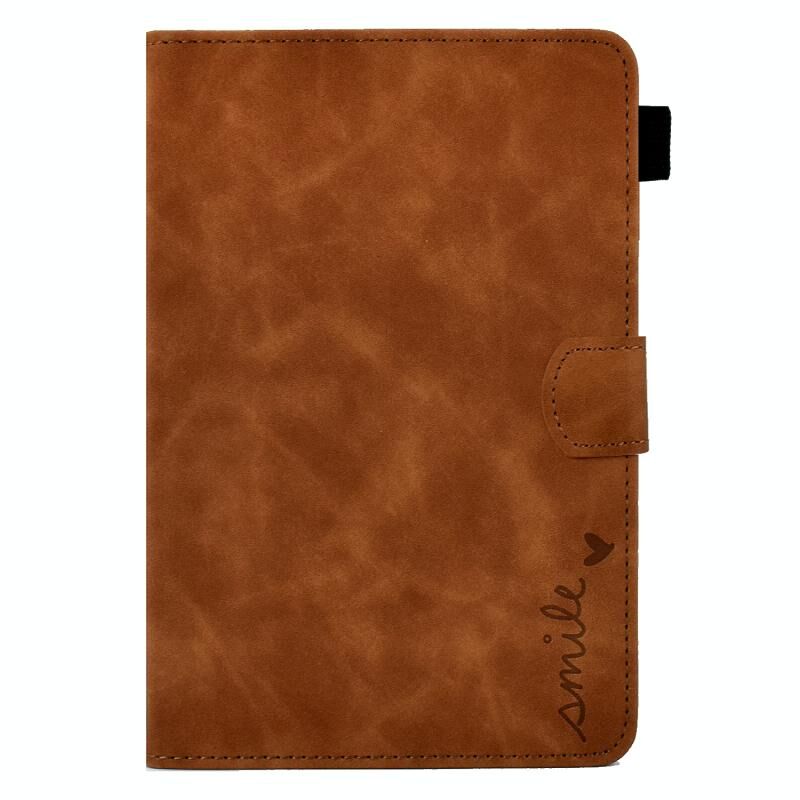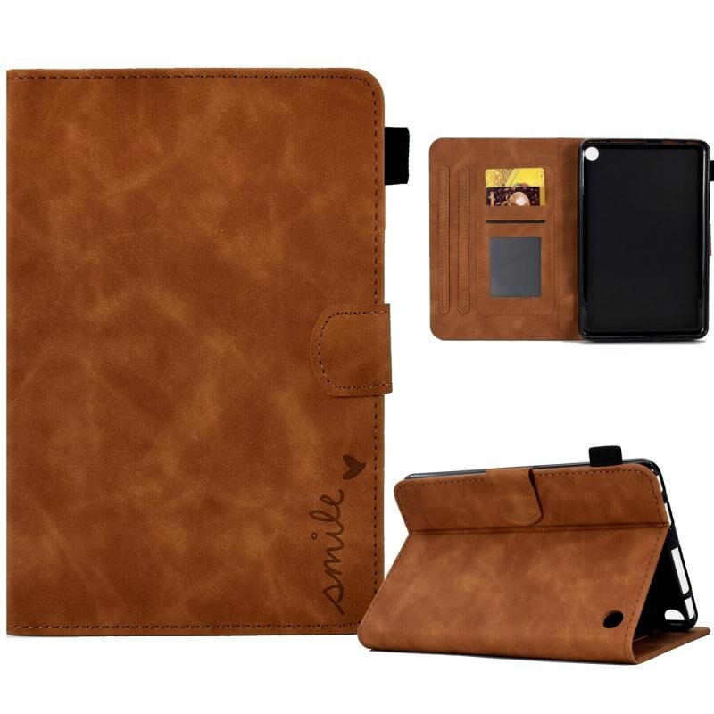 Για Amazon Kindle Fire 7 2022 ανάγλυφο χαμόγελο Flip Tablet δερμάτινη θήκη (καφέ)