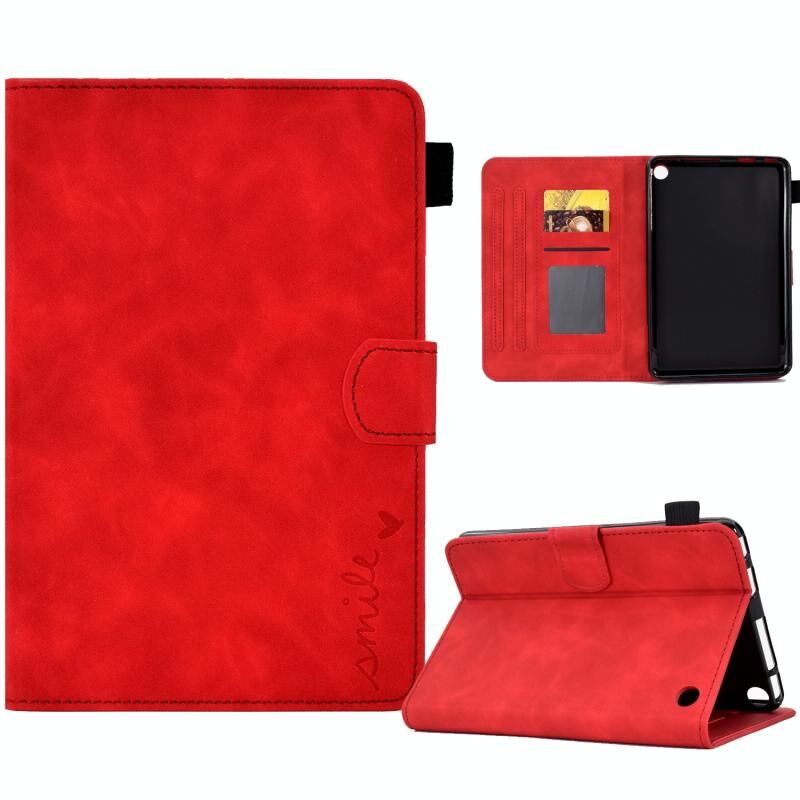 Για Amazon Kindle Fire 7 2022 ανάγλυφο χαμόγελο Flip Tablet δερμάτινη θήκη (κόκκινο)
