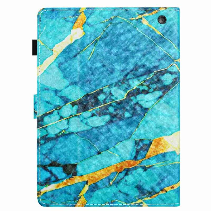 Θήκη για Amazon Kindle Fire 7 2022 με μοτίβο μαρμάρου, ραφτή, από έξυπνο δέρμα (Χρυσό Μπλε)