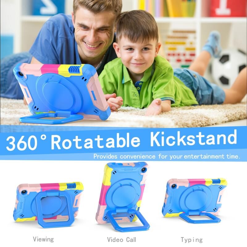 Για Amazon Kindle Fire 7 2022 σιλικόνη + PC βραχιόλι κάτοχος Tablet υπόθεση (Camouflage + μπλε)