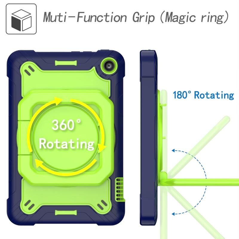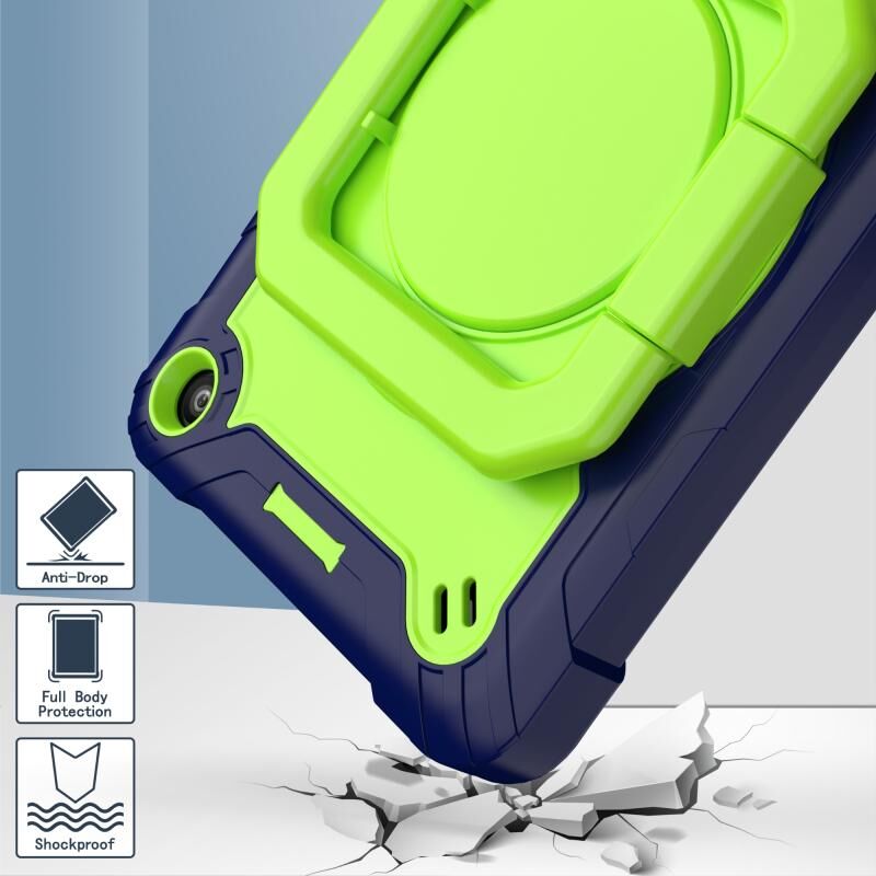 Για Amazon Kindle Fire 7 2022 σιλικόνη + PC βραχιόλι κάτοχος Tablet υπόθεση (Navy Blue + Κίτρινο πράσινο)
