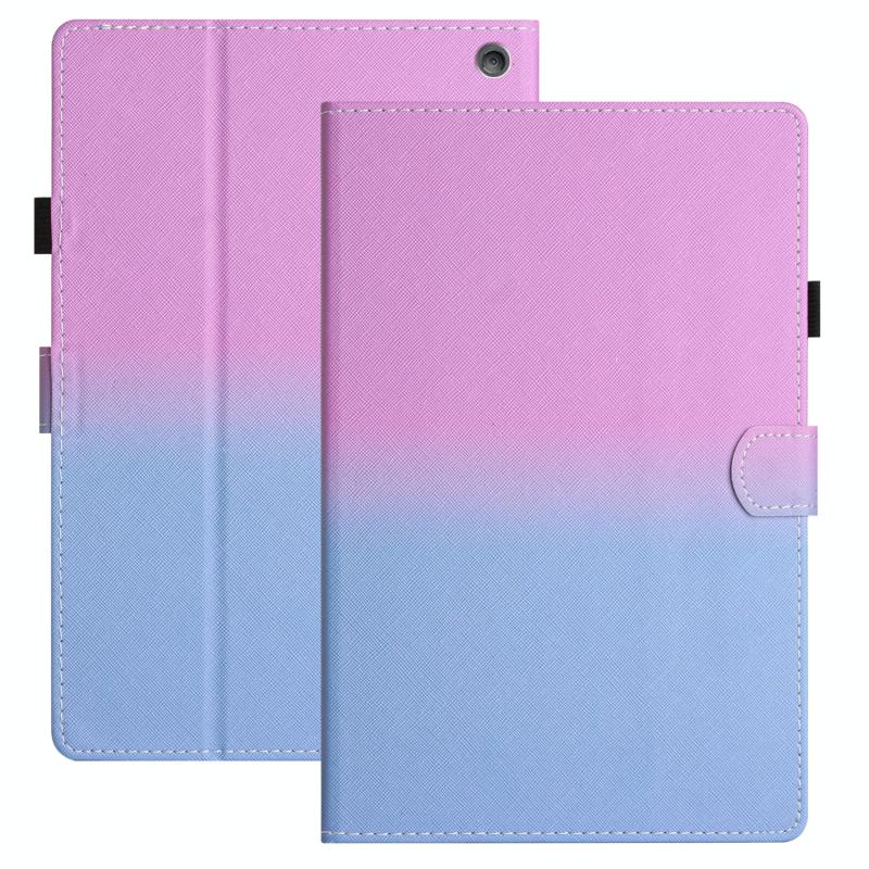 Θήκη Ταμπλέτας από Δέρμα με Ραφές και Διαβαθμιστικό Χρώμα για Amazon Kindle Fire 7 2022 (Μωβ-Μπλε)