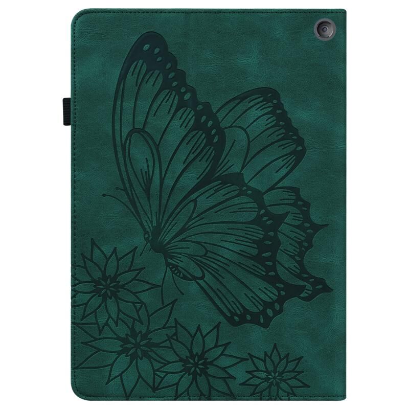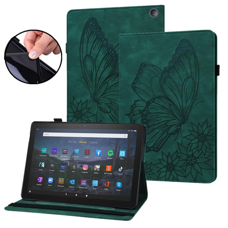 Θήκη ταμπλέτας από δέρμα με ανάγλυφο σχέδιο μεγάλης πεταλούδας για Amazon Kindle Fire HD 10 / 10 Plus 2021 (πράσινο)