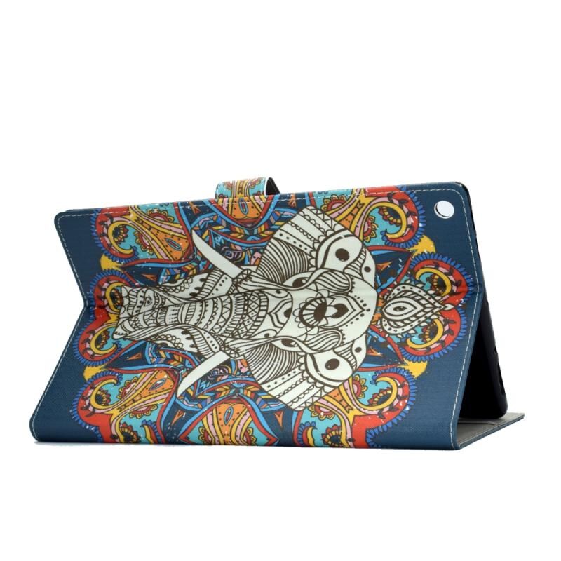 Θήκη για Amazon Kindle Fire HD 10 2017 με πολύχρωμο σχέδιο, οριζόντια αναδιπλούμενη από δερματίνη PU με βάση στήριξης & θήκη για κάρτες & λειτουργία αυτόματης αφύπνισης/ύπνου (Πολύχρωμος Ελέφαντας)