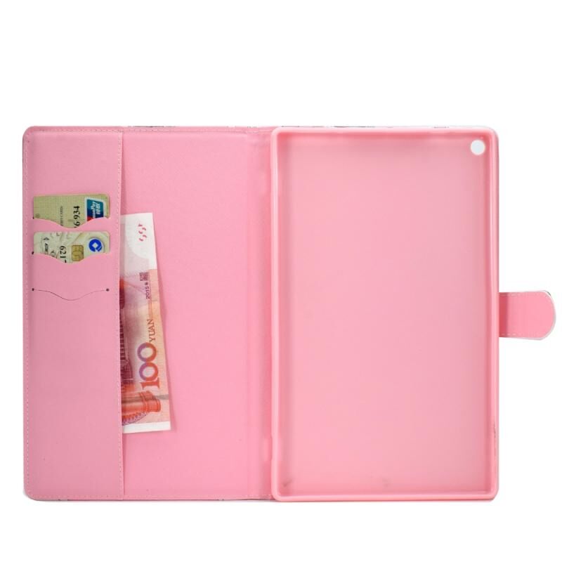 Θήκη για Amazon Kindle Fire HD 10 2017 με πολύχρωμο σχέδιο, οριζόντια αναδιπλούμενη από δερματίνη PU με βάση στήριξης & θήκη για κάρτες & λειτουργία αυτόματης αφύπνισης/ύπνου (Μωβ Άμμος).