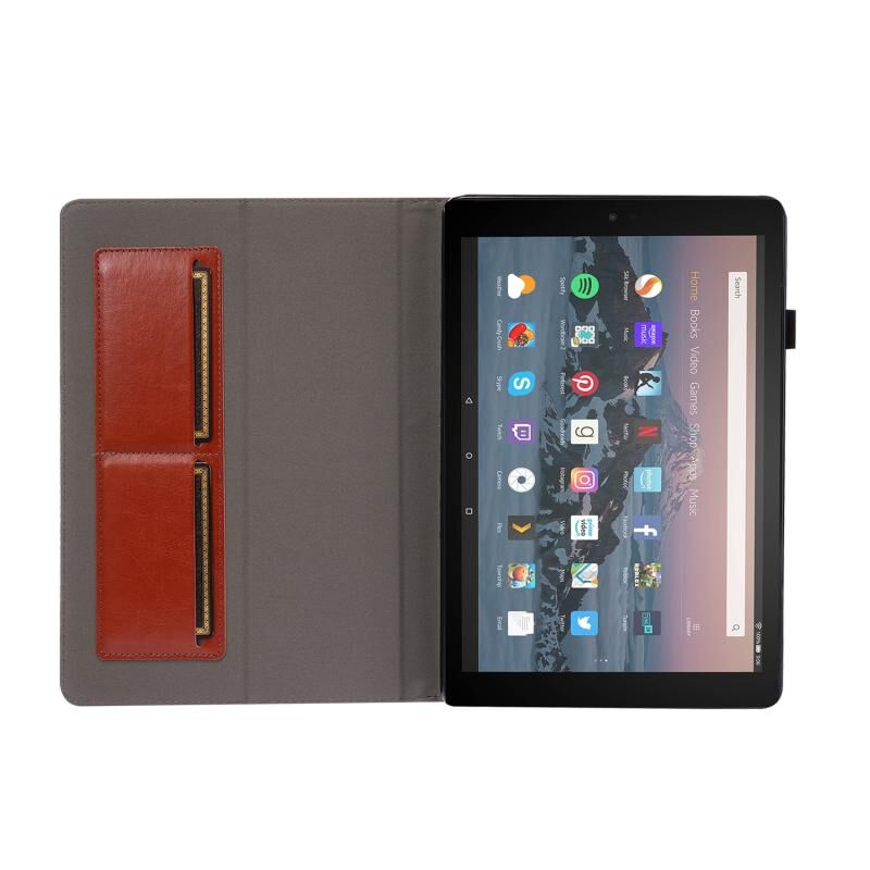 Για το Amazon Kindle Fire HD 10 2021 Business Οριζόντια Flip PU δέρμα υπόθεση με δύο-πτυσσόμενα θήκη & υποδοχές καρτών & υποδοχή στυλό (καφέ)