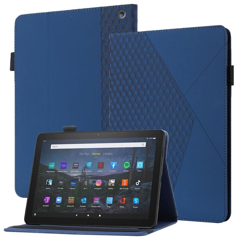 Για το Amazon Kindle Fire HD 10 2021 Rhombus Skin Feel Οριζόντια Flip Tablet δερμάτινη θήκη με υποδοχές για κάρτες & κάτοχος (μπλε)